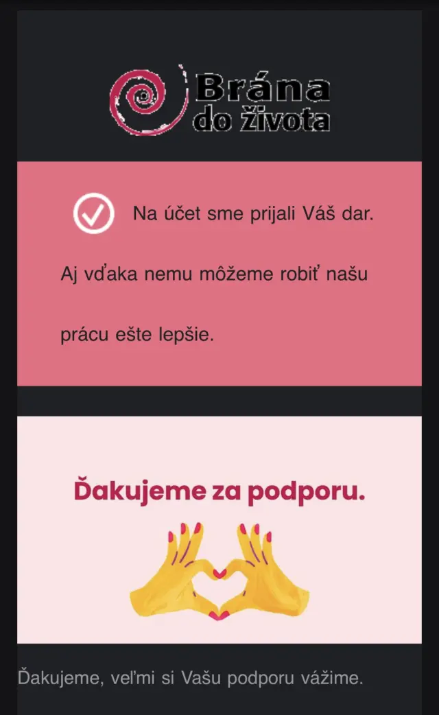 ďakujeme ti za podporu. Spolu sa nám podarilo vyzbierať 689 EUR, kt. sme darovali OZ Brána do Života, kt. pomáha ženám a ďetom zažívajúcim násilie.