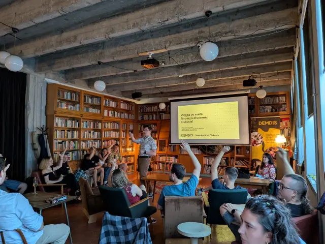Sme DEMDIS – nezávislá organizácia, ktorá dlhodobo spája ľudí s rôznymi názormi do férových a otvorených diskusií. Od roku 2021 sme zapojili vyše 70 tisíc ľudí do digitálnych diskusií cez náš softvér a dnes princípy slušnej a otvorenej diskusie prenášame aj do živého priestoru.