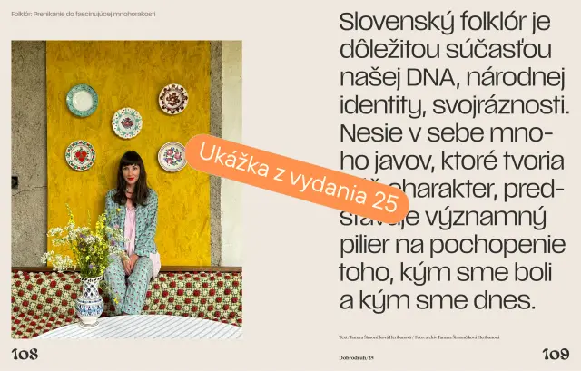 “DobroDruh je môj srdcový projekt. Mám na ňom rada, že ho netvoríme len my v Bystrinách, ale vzniká vďaka desiatkam ľudí naprieč Slovenskom. Vďaka DobroDruhovi sme v kontakte s obrovským množstvom skvelých a láskavých ľudí, ktorí sú v rôznych podobách zhmotnení na samotných stránkach každého vydania. Vždy, keď DobroDruha chytím do ruky, a nezáleží na tom, ktoré vydanie, som veľmi hrdá na to, čo na Slovensku vytvárame. Zvykli sme hovoriť, že DobroDruh združuje to najlepšie, čo na Slovensku máme. Pri tomto vydaní som si však slovo najlepšie vymenila za slovo najobľúbenejšie, pretože v sebe nesie viac ľudskosti a toho, čím naozaj chceme, aby bol. Zbierkou obľúbených miest.”