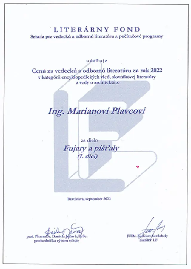 Ocenenie za vedeckú a odbornú literatúru, ktoré autor získal od Literárneho fondu v roku 2023.