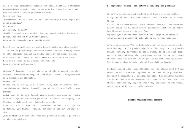 Štrnásťročný Michal prežije leto, ktoré mu navždy zmení život. Spoznáva prvú lásku, okúsi sklamanie a odhalí temnejšie stránky svojej mysle. Zisťuje, že jeho inakosť má meno – Aspergerov syndróm. Príbeh pre mladých, ktorí sa cítia iní, ale nie sú sami.