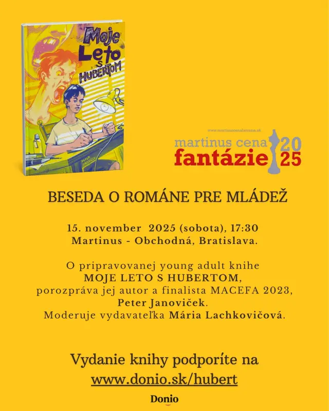 Pri tejto príležitosti mi dovoľte vás pozvať na besedu o knihe, ktorá sa uskutoční v rámci celodenného programu odovzdávania ocenení Martinus Cena Fantázie 2025.