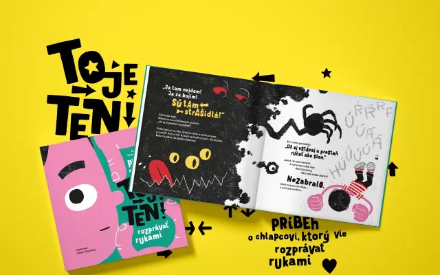 Pred rokom sme vydali knižku TO JE TEN! – o chlapcovi, ktorý vie rozprávať rukami, ktorá si získala stovky čitateľov a čitateľiek a dostala sa aj do výberu Krajiny čitateľov Prečítané leto a videli ste ju aj v nesúťažnej časti slovenských kníh prehliadky Nejkrásnější české knihy roku.