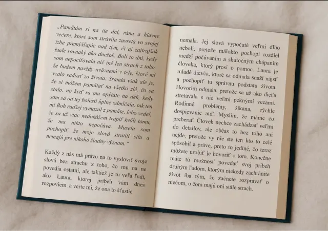 Za touto knihou aj kampaňou stojím sama. Od prvých napísaných viet až po snahu knihu vydať a dostať ju k ľuďom, ktorí ju potrebujú na to, aby sa už viac nebáli vystúpiť a prehovoriť.