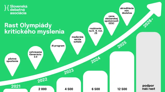 Slovenská debatná asociácia (SDA) už 26 rokov podporuje kritické myslenie, otvorenosť a demokratické občianstvo mladých ľudí. Olympiáda kritického myslenia je jej nový projekt, ktorý vznikol v roku 2021 a je najrýchlejšie rastúcim programom SDA.