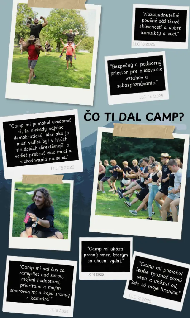 Píšem vám to preto, že viem, že vaša podpora nie je len o číslach, ale najmä o dôvere. Letný Leadership Camp funguje už pätnásť rokov a je pozoruhodné, koľko sa dokáže udiať v priebehu ôsmich dní. Aj keď si v tíme Campu často kladieme otázku, ako ho ešte posunúť ďalej a priniesť mladým ľuďom ešte hlbšie poučenia, zároveň vidíme, že už v tejto podobe má zmysel a prináša skutočný dopad.