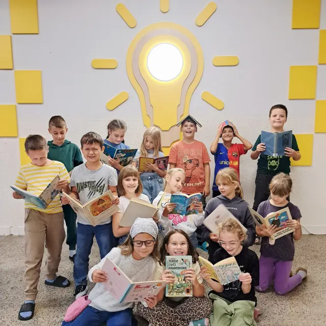 Každý mesiac k nám príde koordinátor z mestskej knižnice s kufrom plným viac ako 200 kníh. V každej triede knihy predstaví a nechá tam 10 titulov na priamu výpožičku. O mesiac prídu nové, takže deti majú stále čerstvý výber príbehov a poznania.