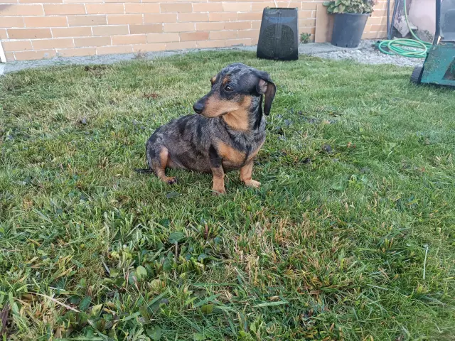 Lara je mladá, 3-ročná fenka jazvečíka králičieho, farba merle. Priniesli sme si ju domov ako maličké šteniatko, mala 2 mesiace. Od prvej chvíle, ako sme si ju vzali na ruky, tak sme sa do nej všetci zamilovali. Miluje škrabkanie, maznanie, pamlsky a hrabanie v záhrade. Nikdy sa nikto tak netešil na nás, keď sme prišli domov ako Lara. Vďaka nej a jej nekonečnej láske sme spoznali toho najlepšieho priateľa a maznáčika. Dali by sme za ňu aj to posledné.