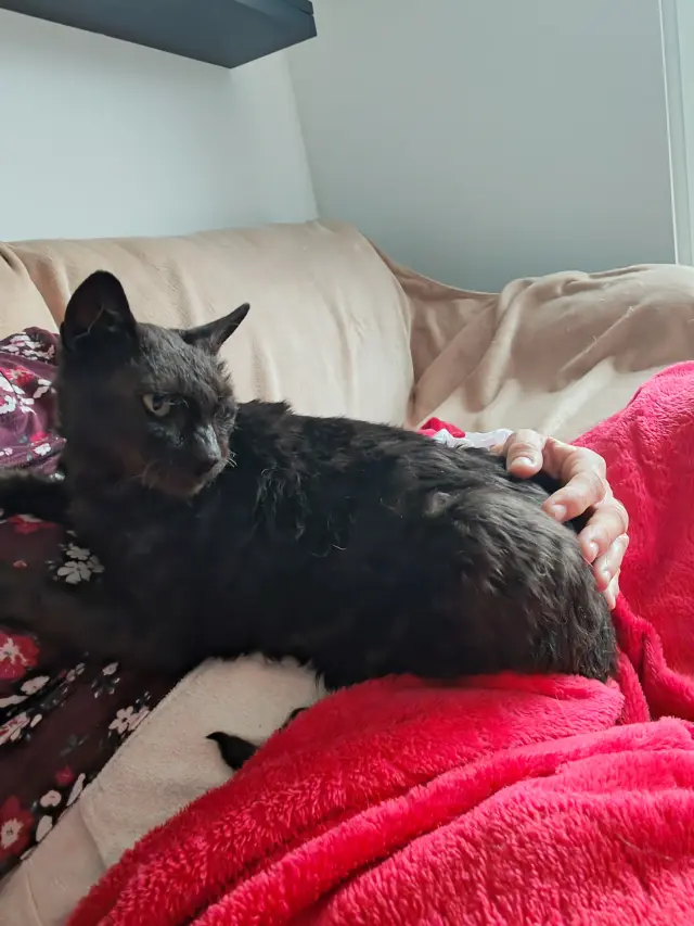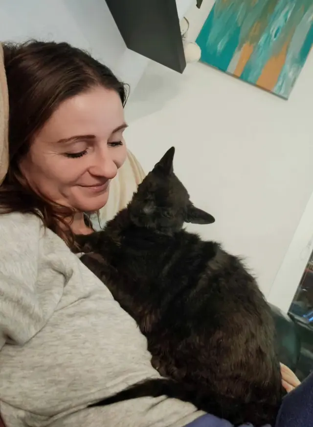 Laruška je moja srdcová záležitosť – prvá mačička, ktorú som zachránila. Našli sme ju spolu s jej dvoma súrodencami v záhrade mojej mamky v septembri 2022. Bola najmenšia, slabá, s hnisom v očkách a uškami plnými svrabu. Napriek tomu mala obrovskú vôľu žiť.