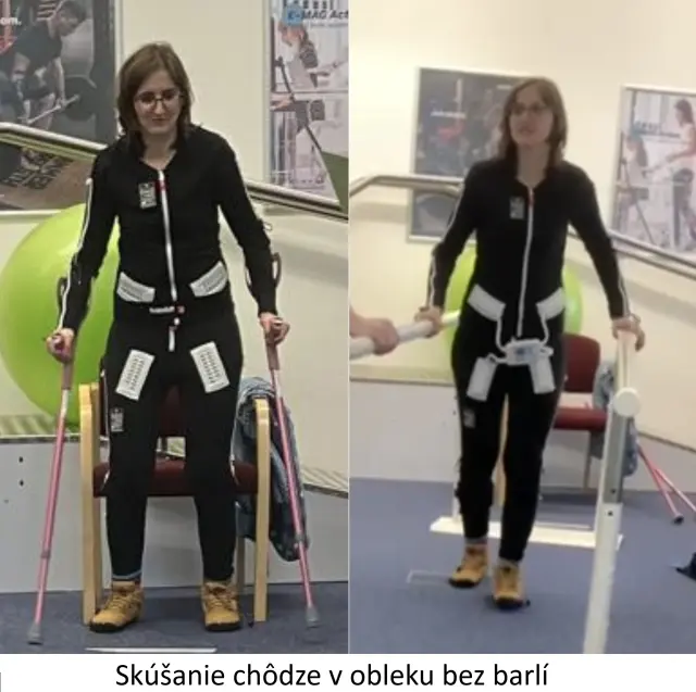 Tento špeciálny oblek ktorý by som s vašou pomocou rada zakúpila by mi umožnil chôdzu aj bez opory barlami a pomáha aj pri cvičení ako rehabilitačná pomôcka. Mala som možnosť si ho v rámci testu vyskúšať a je to naozaj super pomôcka.