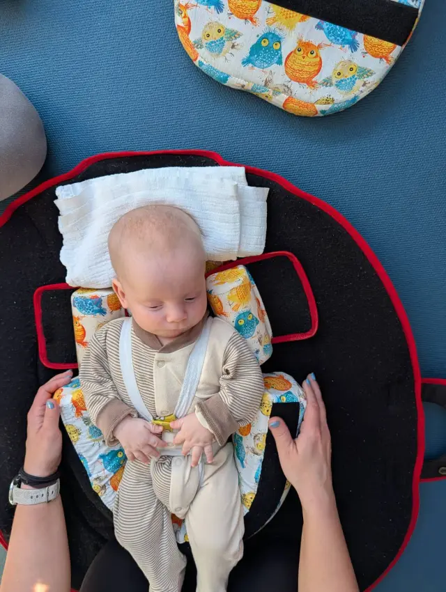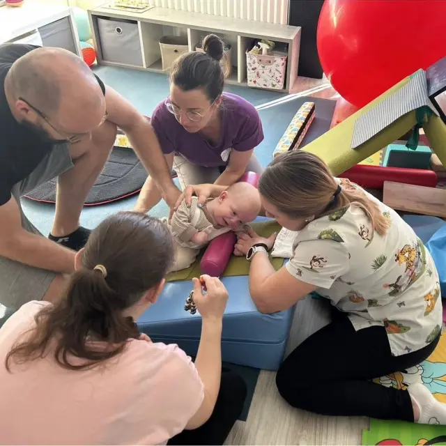 Pokračovanie v rozpravaní už preberie mamka a pokusím sa priblížiť, prečo Šimonko potrebuje Vašu pomoc. Kvôli tomuto ochoreniu hrozí, že náš synček Šimonko nedosiahne mnohé vývinové míľniky ako jeho rovesníci – nenaučí sa sedieť, chodiť ani rozprávať. Každý týždeň chodíme s ním na lekárske a rehabilitačné vyšetrenia a denne s ním cvičíme doma. Šimonko mal možnosť isť aj na týždenný intenzívy rehabilitačný pobyt, na ktorom sme videli výrazne zlepšenie v držaní hlavičky. Okrem toho dokázal dlhšie zotrvať v polohe, v ktorej bol pokojnejší, menej sa prehýbal, ľahšie zaspával a celkovo pôsobil spokojnejšie.