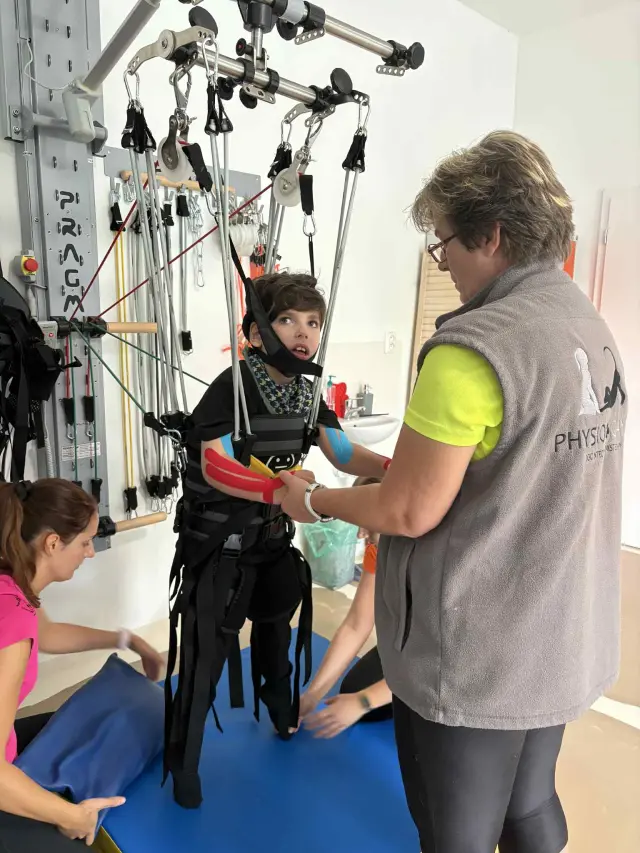 Tento systém využívajú aj odborníci v PhysioCanis centre v Kotrčinej Lúčke, kde Matej pravidelne cvičí a práve oni ho odporučili ako účinné riešenie pre jeho stav.