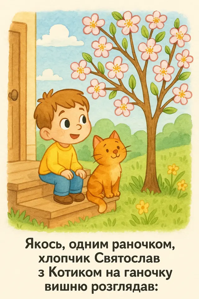 Цікавий, ритмічний твір для пізнання природних змін за період року. Допоможіть книжечці побачити світ, а малятам читати і слухати про хлопчика і його пухнастого мудрого друга та вишеньку, яка росла в саду.
