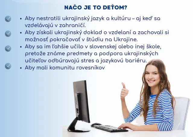 Každý Váš príspevok je investíciou do inteligencie a identity budúcej ukrajinskej generácie, ktorá svojím vzdelaním a potenciálom posilní aj slovenskú spoločnosť, pokiaľ sa rozhodne tu zostať.