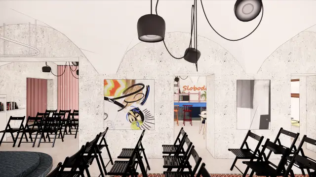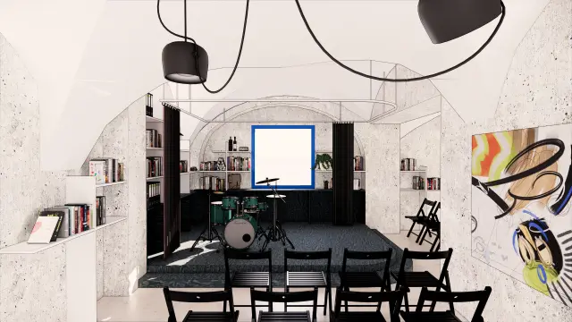 - Eventovú miestnosť – miesto pre diskusie, koncerty, divadlo, tvorivé workshopy aj súkromné akcie