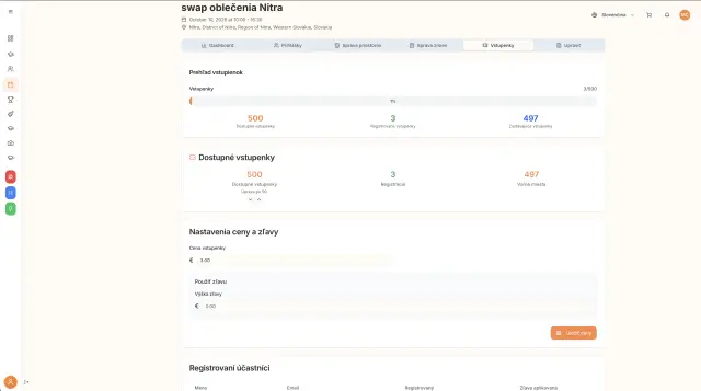 Organizátori-ky vedia priamo nastaviť cenu & zľavu – a to pár klikmi.