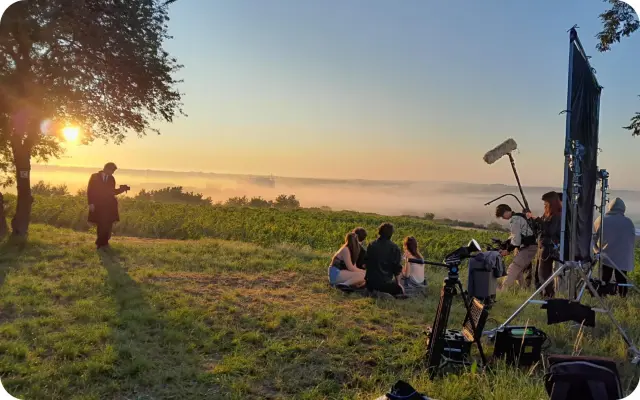 Po mesiacoch príprav, trinástich dňoch natáčania v júli 2025 v Modre, Pezinku, Trnave a okolí sa náš film nachádza v procese postprodukcie, riešime: strih, zvuk, hudbu, colorgrading, premiéru a distribúciu filmu.