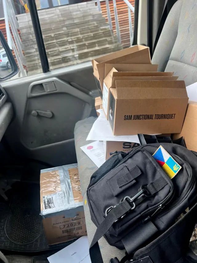 Po dlhšom čase sa nám podarilo zabezpečiť ďalších šesť junkčných turniketov – na fotke sú vyzdvihnuté u dodávateľa v Čechách. Na Ukrajinu ich odvezie inštruktor vojenských medikov, tak sa určite dozvieme viac informácií.