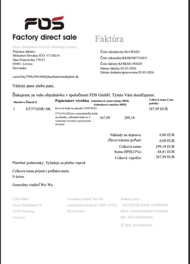 - Úložná búdka (plechový materiál) – cca 500 €