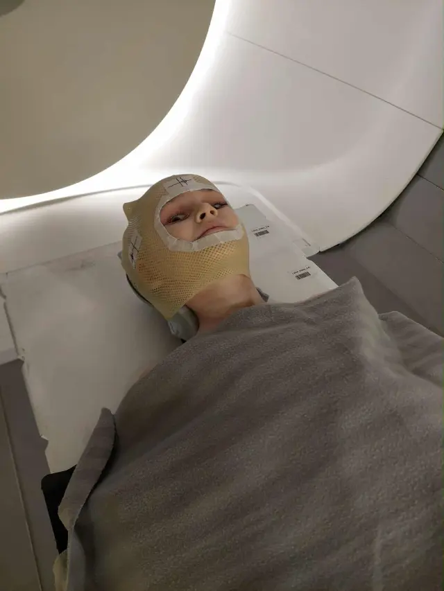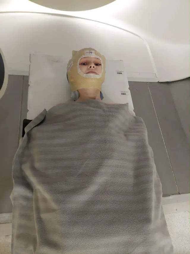 pozdravujem Vás z protónového centra. Takto prebiehajú moje dni v Prahe. Dostal som špeciálnu masku na hlavičku, ktorú mám počas ožarovania na sebe. Veľmi dúfame, že mi táto liečba pomôže a čoskoro budem môcť byť doma s rodinou a priateľmi.